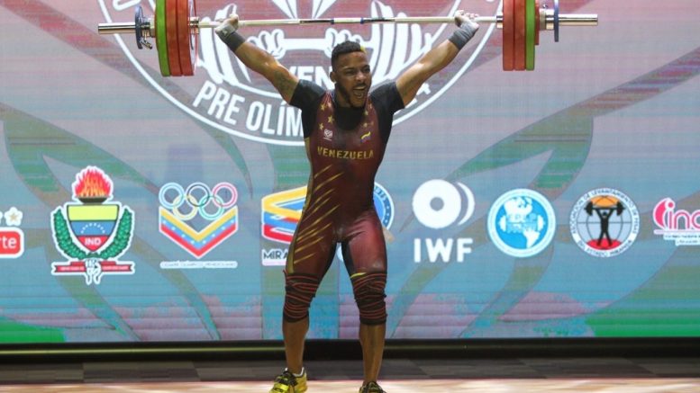 El pesista venezolano Julio Mayora ganó la medalla de oro en el arranque con un levantamiento de 154kg, en los 73kg.