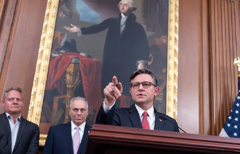 “Vamos a seguir adelante y a lograrlo”, dijo el presidente de la Cámara, Mike Johnson, al salir de una serie de reuniones privadas con legisladores durante la madrugada. “Cumpliremos con nuestro plazo del 4 de julio”, agregó.
