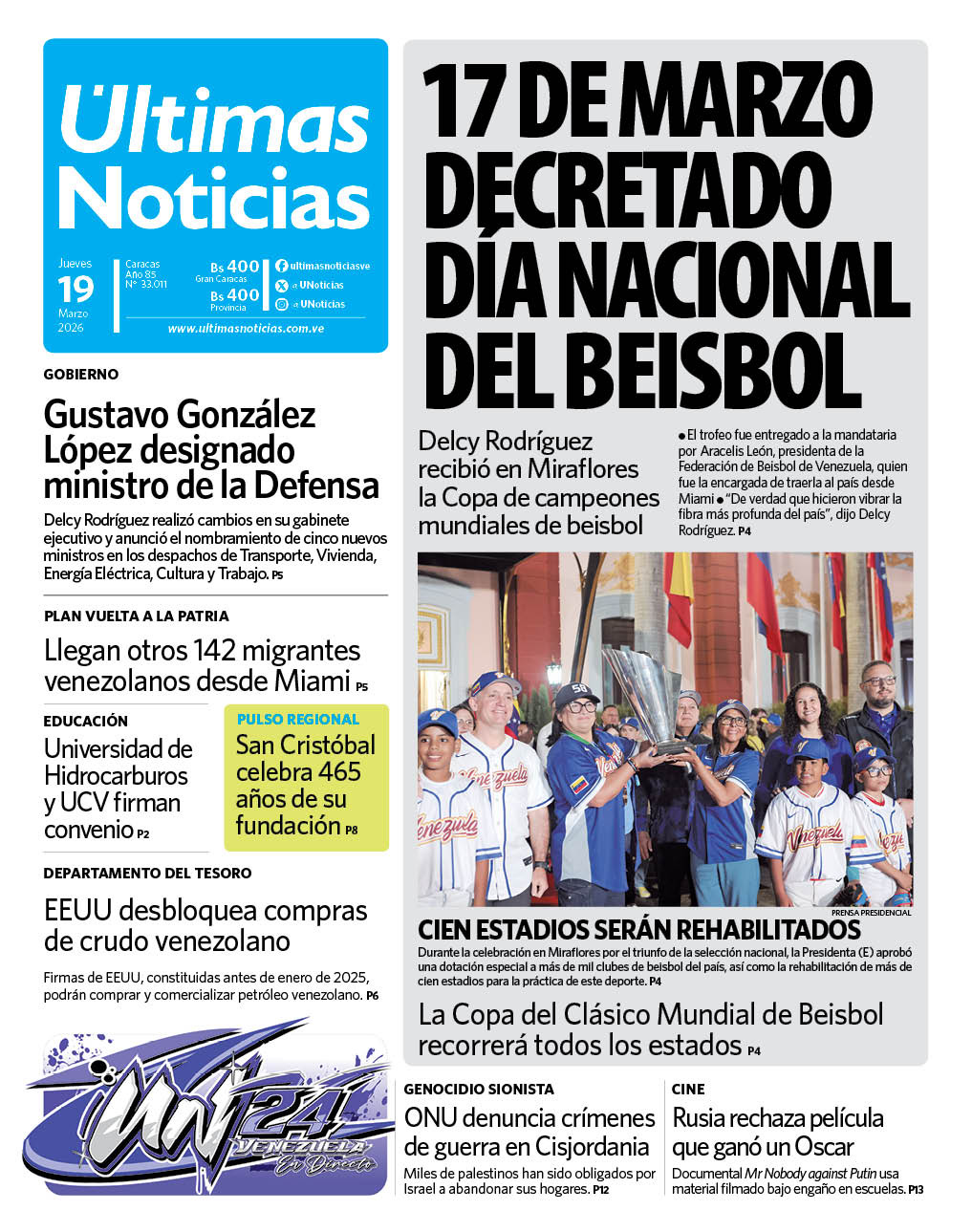 Ya tienes todo claro. Recuerda que para mantenerte al día, todo el día, lo único que tienes que hacer es conectarte con ultimasnoticias.com.ve, (@UNoticias) en X, TikTok, Threads, Facebook, Instagram, LinkedIn y también en nuestro canal de Telegram (@UNoticias). Te invito además a ¡leer el diario impreso! Busca ya tu ejemplar de Últimas Noticias.