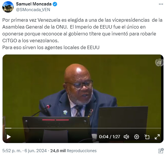 También debes saber que Venezuela fue elegida para ocupar una de las vicepresidencias de la Asamblea General de Naciones Unidas, algo que es la primera vez que sucede, como lo informó el embajador Samuel Moncada.