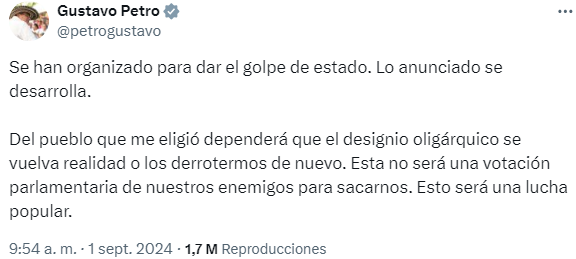 El presidente de Colombia, Gustavo Petro, tiene también sus propios problemas. El Consejo Nacional Electoral de ese país decidió formular cargos porque afirma que hay elementos de una supuesta irregularidades en la financiación de la campaña presidencial de Petro. En el congreso, la Comisión de Investigación y Acusaciones de la Cámara de Representantes adelanta una investigación en este sentido. Petro dice que eso es un golpe de Estado. Lo cierto es que si la cosa avanza podría terminar en un juicio parlamentario y una posible destitución. Por eso lo de golpe de Estado.