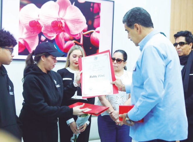 Por cierto, hablando de República Dominicana, este fin de semana Maduro recibió en Miraflores a Zulinka Pérez, la hija de Rubby Pérez, junto a otros familiares, y le entregó los documentos que le dan la nacionalidad post mórtem al merenguero.
