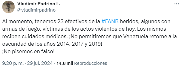 Por su parte, el fiscal general Tarek W. Saab informó que “ya se encuentran numerosos detenidos a nivel nacional” y el general Vladimir Padrino López señaló que varios funcionarios resultaron heridos el día de ayer.