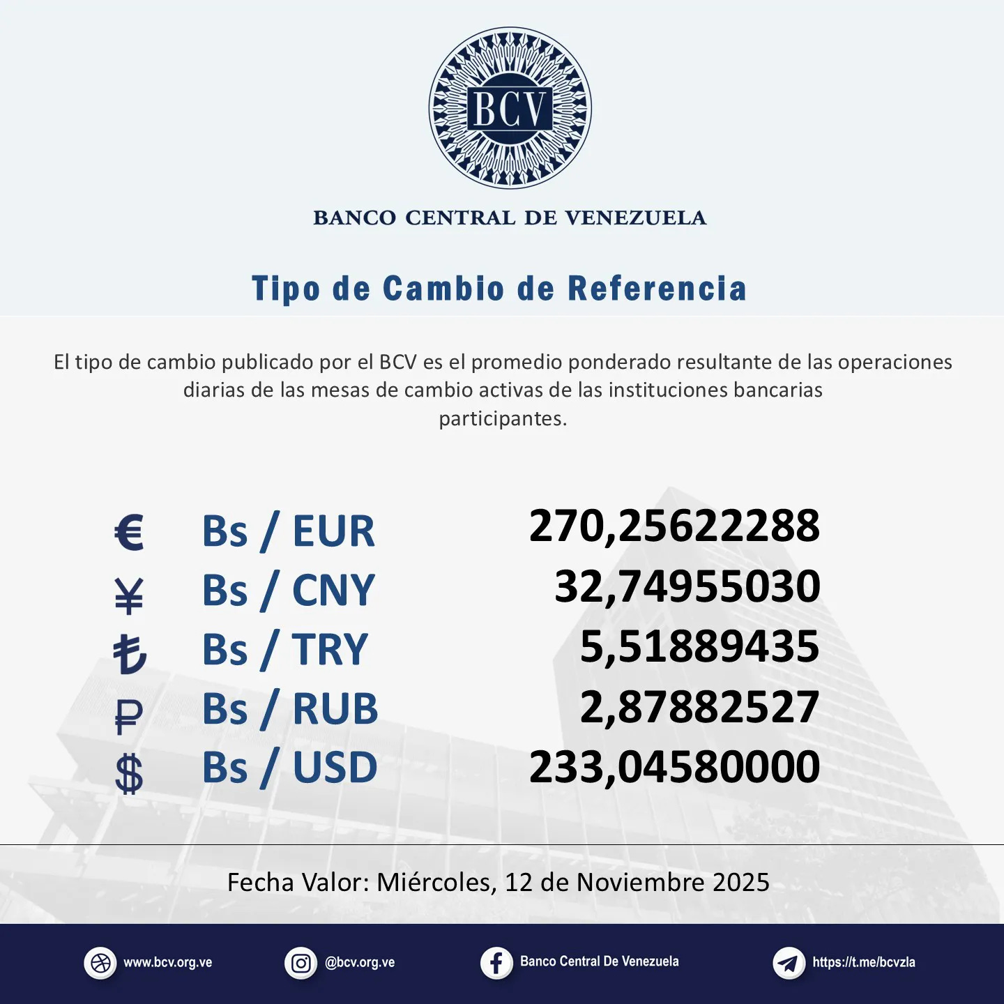 El Banco Central de Venezuela informó que las mesas de cambio de ayer arrojaron un promedio de 233,04 bolívares por dólar. Recuerda que esta es la única tasa válida para cualquier transacción del día de hoy.