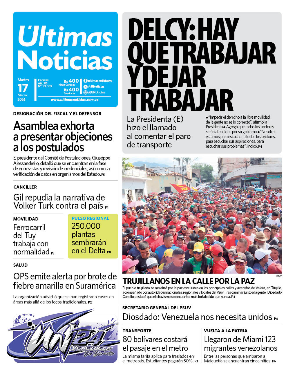 Últimas Noticias está en la calle 📰 Échale un ojo aquí mismo a la primera página del periódico más importante de Venezuela 👀