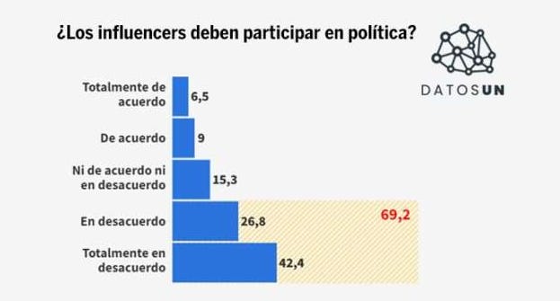 Antes de terminar, te dejo aquí os resultados de nuestra encuesta digital de la semana pasada. Como recordarás, en Datos UN exploramos la opinión de la gente sobre los influencers de redes sociales, así como qué tanto alcance tienen estos personajes en nuestra audiencia y por qué canales llegan al público. Instagram y TikTok son las redes donde la gente los sigue más y un 69% de los participantes dijeron que los influencers no deberían meterse en política. Lee la nota completa con más datos y gráficos interactivos aquí.