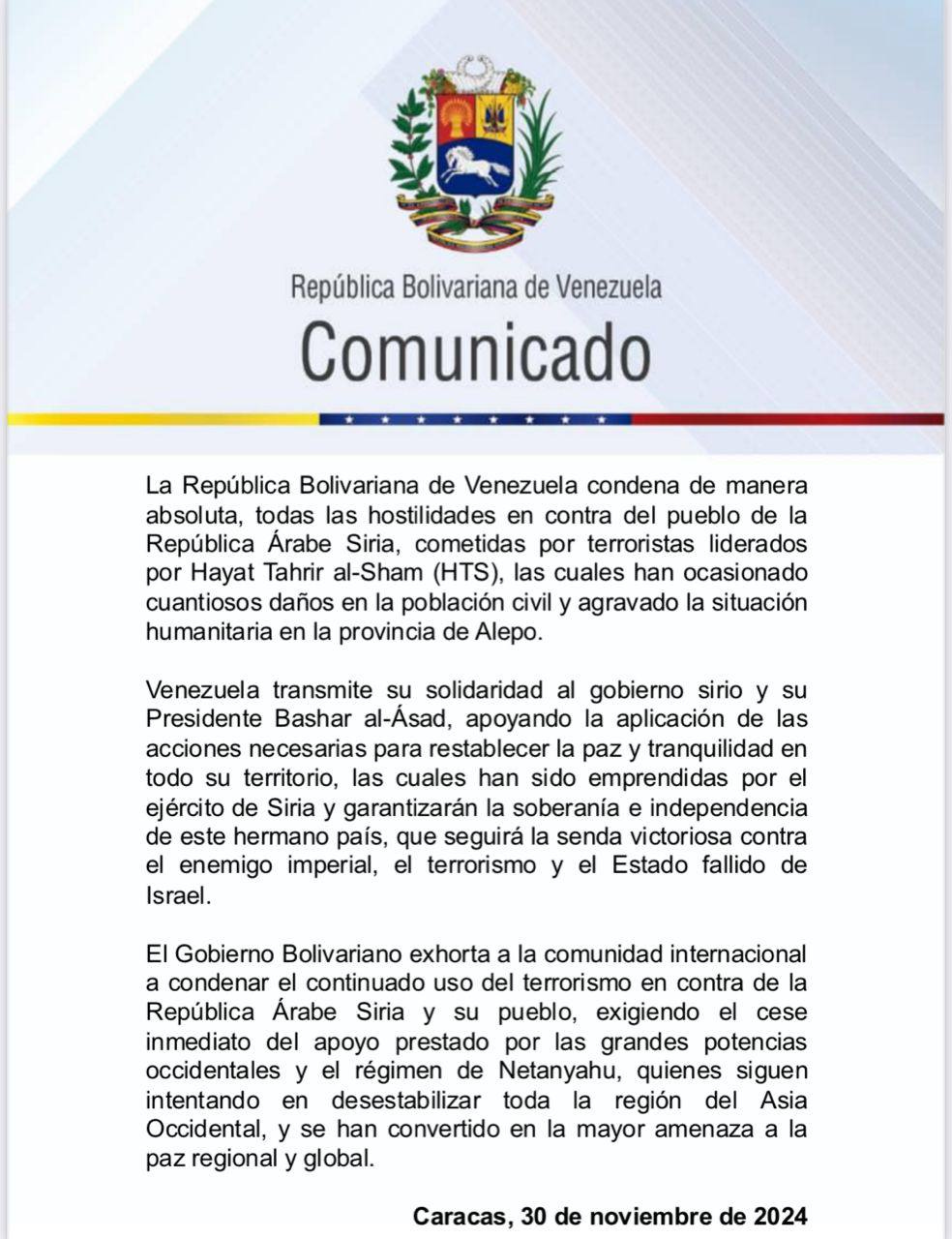 También ayer hubo una gran movilización en todos los estados, pero principalmente en Caracas, con una gran marcha y caravana por la defensa de la Navidad, la paz y la alegría. La cosa terminó en Miraflores y el presidente Nicolás Maduro salió a recibir a la multitud para celebrar la llegada del mes de diciembre y también el fracaso de quienes pretendían marcar la fecha con una convocatoria de odio: la oposición extremista, encabezada por María Corina Machado y Edmundo González, llamó a manifestaciones en todo el país pero casi nadie respondió.
