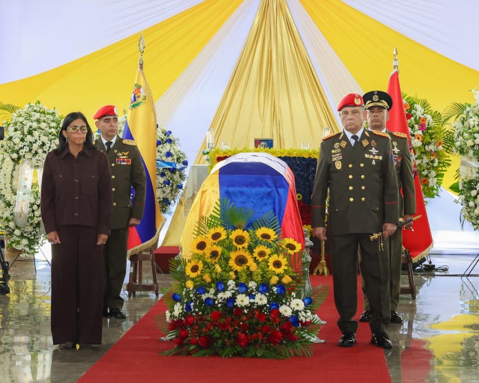 La presidenta encargada Delcy Rodríguez asistió ayer al acto de capilla ardiente en homenaje al coronel Helmer David Prato Veloz, quien falleció la mañana del martes tras una larga convalecencia después de haber sido gravemente herido la madrugada del 3 de enero durante la agresión gringa contra nuestro país.