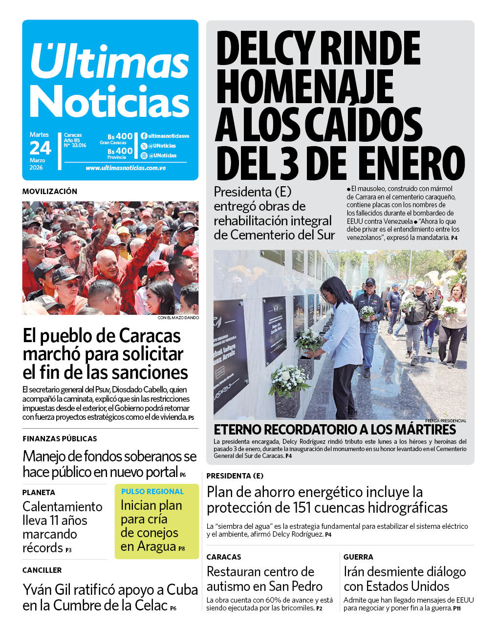 Así arrancó la semana, mi gente buena. Recuerda que para mantenerte al día, todo el día, lo único que tienes que hacer es conectarte con ultimasnoticias.com.ve, (@UNoticias) en X, TikTok, Threads, Facebook, Instagram, LinkedIn y también en nuestro canal de Telegram (@UNoticias). Te invito además a ¡leer el diario impreso! Busca ya tu ejemplar de Últimas Noticias.