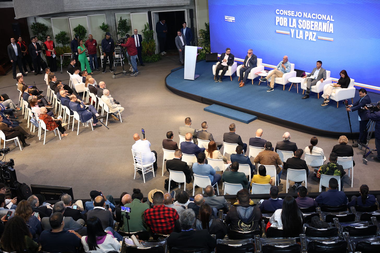 Otro acto importante que sucedió ayer fue la instalación del Consejo Nacional por la Soberanía y la Paz, Capítulo Medios de Comunicación. Jorge Rodríguez encabezó la reunión con los directivos de los principales medios de comunicación públicos y privados del país. ¿Qué les dijo? Les dijo que en este momento crítico de la historia nacional tienen la responsabilidad de mostrar y defender la verdad y la realidad del país frente a las distorsiones generadas por los conglomerados internacionales de comunicación. Señaló que las redes sociales, plataformas hegemónicas en la actualidad, son controladas por unos pocos apellidos, por “agentes de la infamia”.