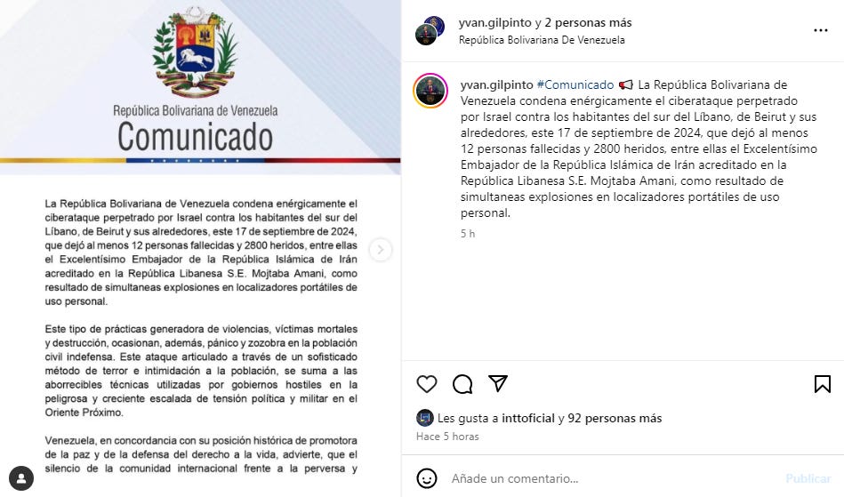 Además de torturar y tratar de eliminar a la población palestina de Gaza, el Estado sionista y genocida de Israel ejecutó un ataque terrorista en Beirut, la capital del Líbano, dejando al menos 11 muertos y casi 3.000 heridos. La cosa consistió en hacer explotar los buscapersonasde varios miembros de la resistencia libanesa. Hezbolá anunció que Israel “recibirá su justa retribución por esta agresión pecaminosa”.