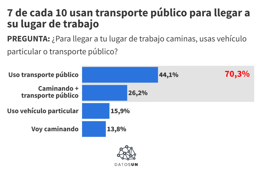 No te vayas sin leer la nota del último sondeo digital de DatosUN, el encuestadora de Últimas Noticias. Hablamos de movilidad, algo de lo que no muchas veces se ocupan quienes miden variables sociales. ¿Sabes cuánta gente usa transporte público para ir a trabajar? ¿Cuánta gente camina hacia su lugar de trabajo? ¿Cuántos transporte tiene que tomar un trabajador para ir a laborar? Lee la nota nota con los resultados aquí.