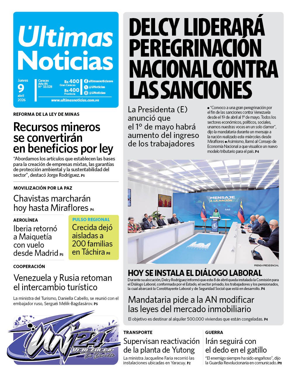 Acuérdate de que hoy hay marcha hasta el Palacio de Miraflores por la paz. También hay una convocatoria sindical para pedir aumento, que vamos a ver cómo estará porque con el anuncio de aumento hecho por Delcy es posible que la convocatoria no sea la que esperaban. Igual con seguridad la marcha del chavismo tendrá bastante gente como siempre, así que Caracas estará movida.