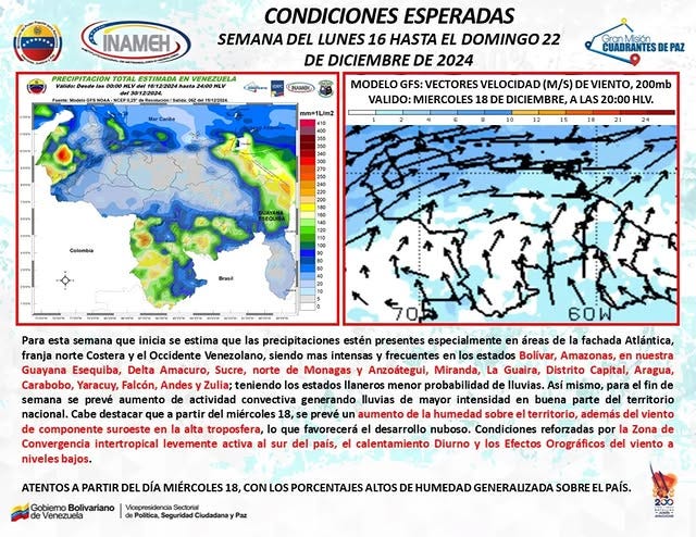 El Inameh pronosticó para esta semana palos de agua en buena parte del país sobre todo hacia el fin de semana y especialmente en la zona norte costera. Así que si pensabas en una playita prenavideña o algo así, te recomiendo que chequees constantemente los pronósticos para que el chaparrón no te sorprenda.