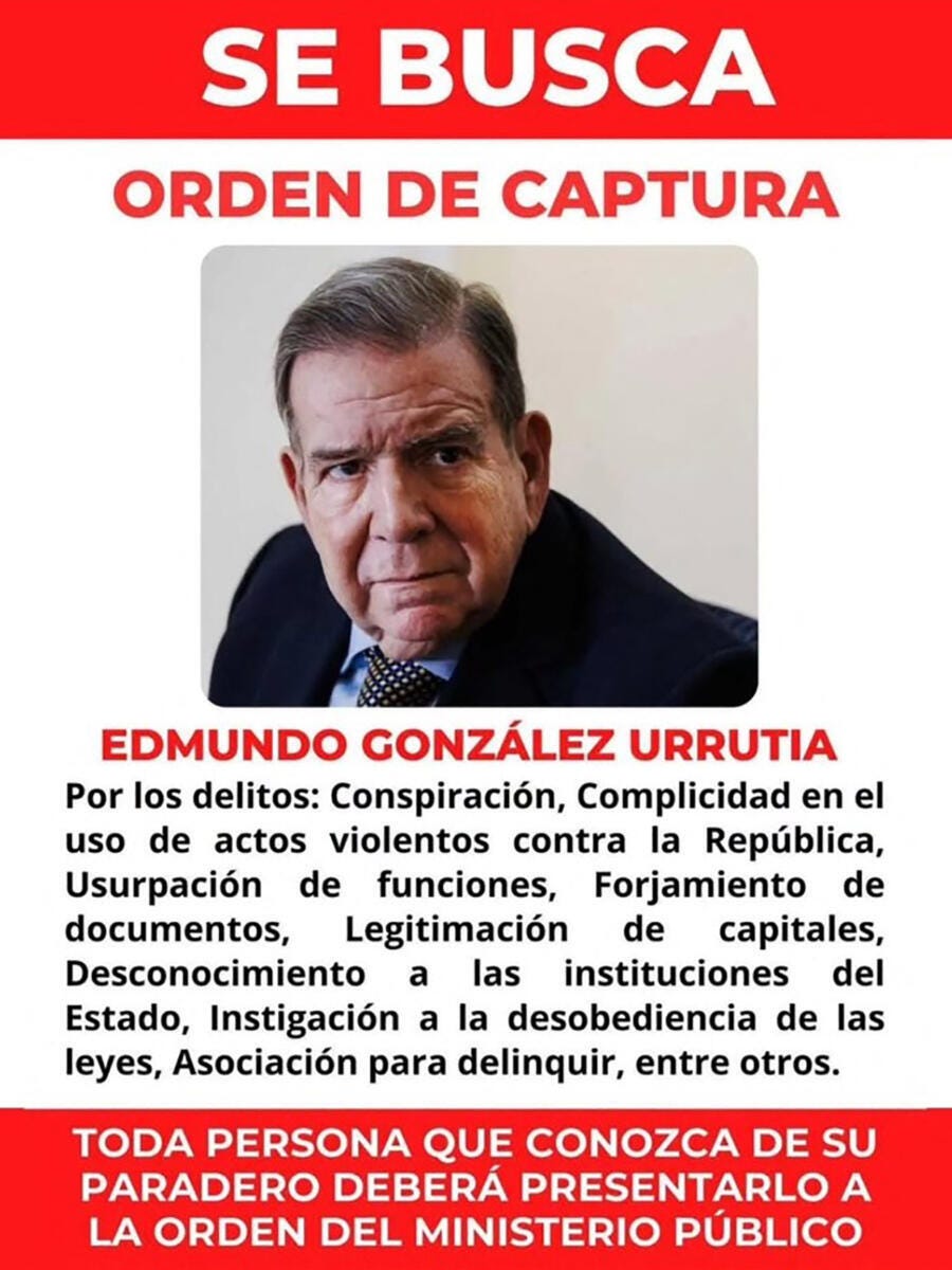 Por cierto, son varios los delitos cometidos por ese señor. La policía ofrece una recompensa de 100.000 dólares por información que conduzca a la captura de Edmundo González, a propósito de su amenaza de venir a Venezuela.