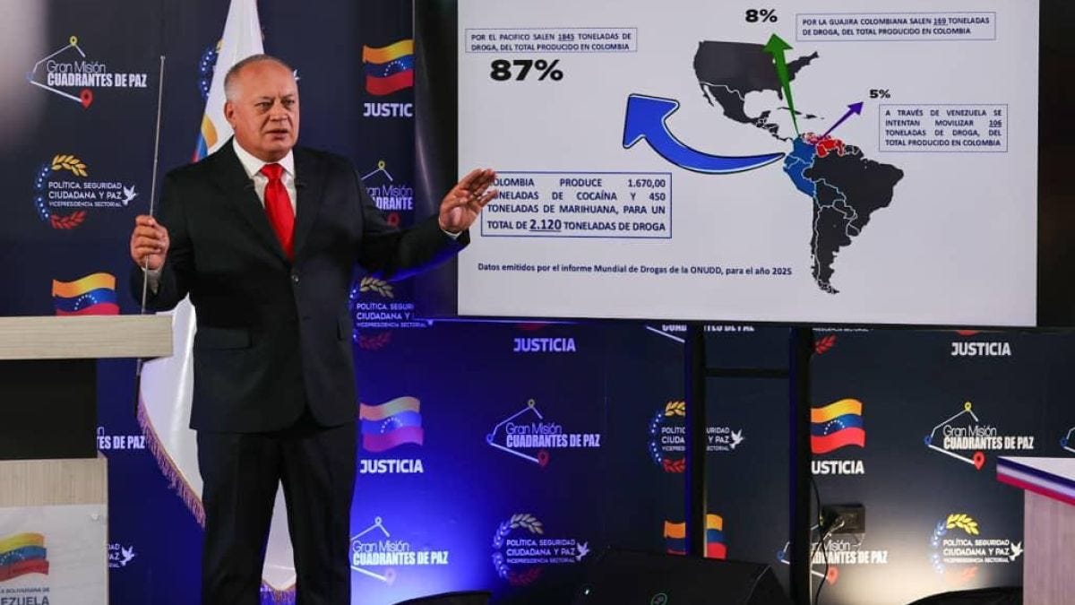 Y en esta rueda de prensa, Cabello también citó cifras de un informe de Naciones Unidas en materia de tráfico de drogas. El documento dice que el 87% de la droga producida en Colombia sale por el Pacífico, lo que desmonta la narrativa de Washington sobre que estas sustancias ilícitas pasan libremente sobre territorio venezolano hacia el Caribe.