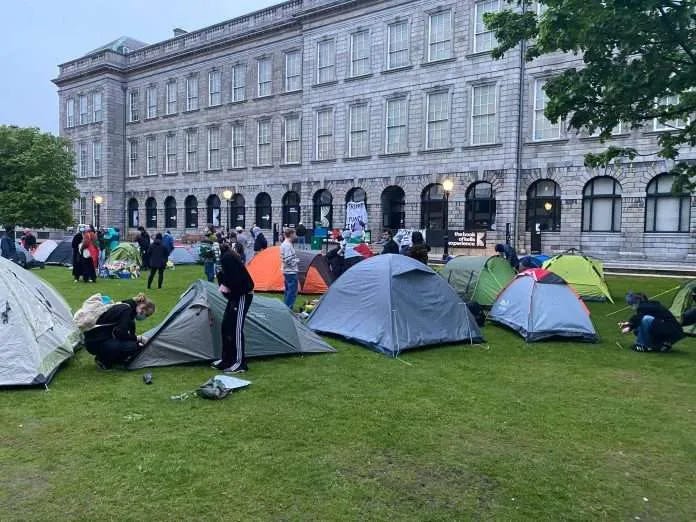 Los estudiantes del Trinity College de Dublin con su protesta pacífica estilo “acampada”, tal cual el modelo iniciado hace semanas por los estudiantes de la Universidad de Columbia en EEUU, lograron que las autoridades de su universidad firmaran un documento en el que se comprometen a romper toda relación con empresas israelíes. Levantaron las carpas.