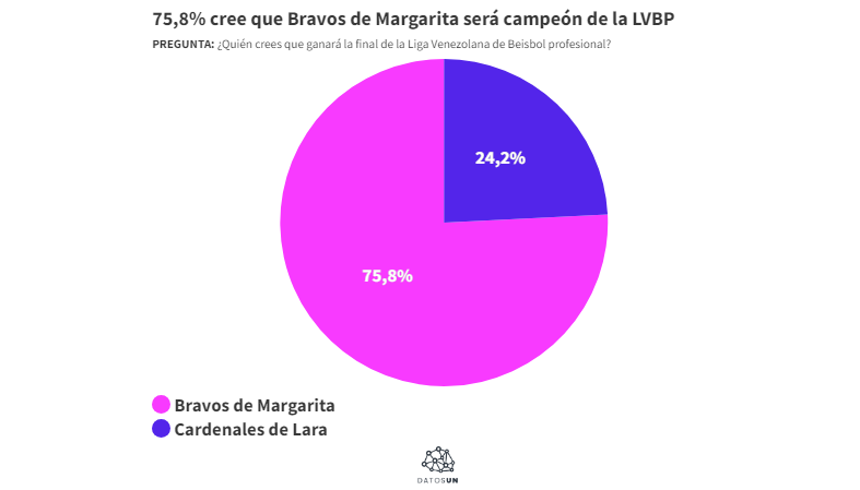 Esta semana en DatosUN recogimos los pronósticos de la fanaticada beisbolera venezolana sobre la final de la LVBP. Aunque la serie en este momento está empatada 2-2 con el triunfo de Lara anoche, la mayoría de la gente, 75% o tres de cada cuatro, aseguran que el campeonato se lo llevará Bravos de Margarita. También los pronósticos dicen que la cosa se definirá en cinco juegos (41%) o en seis juegos (29%). Lee aquí la nota completa y comenta cuál es tu pronóstico.
